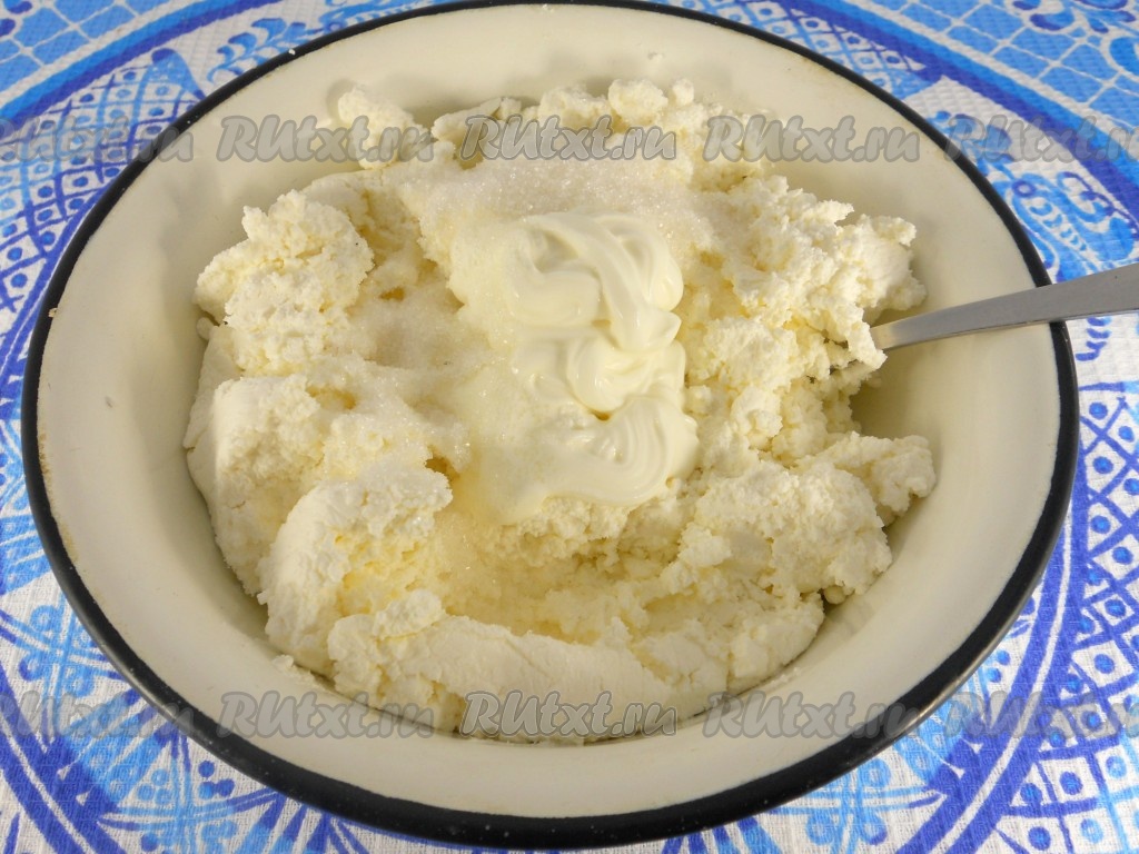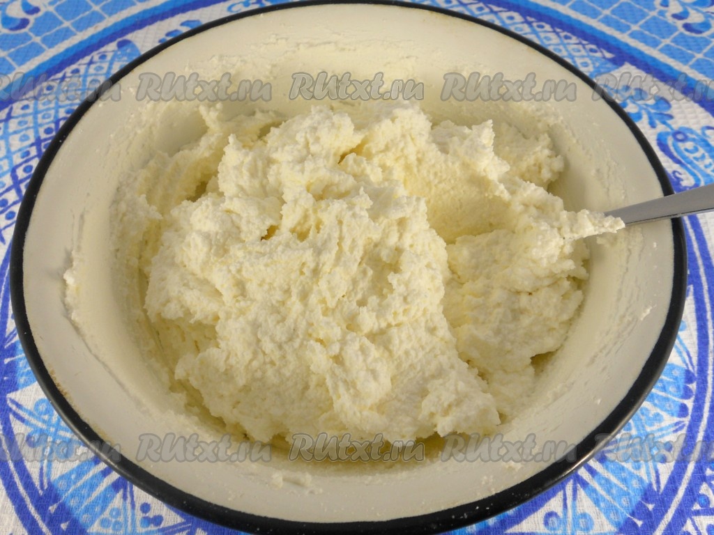 Тщательно перемешать. Творог должен остаться довольно густым.