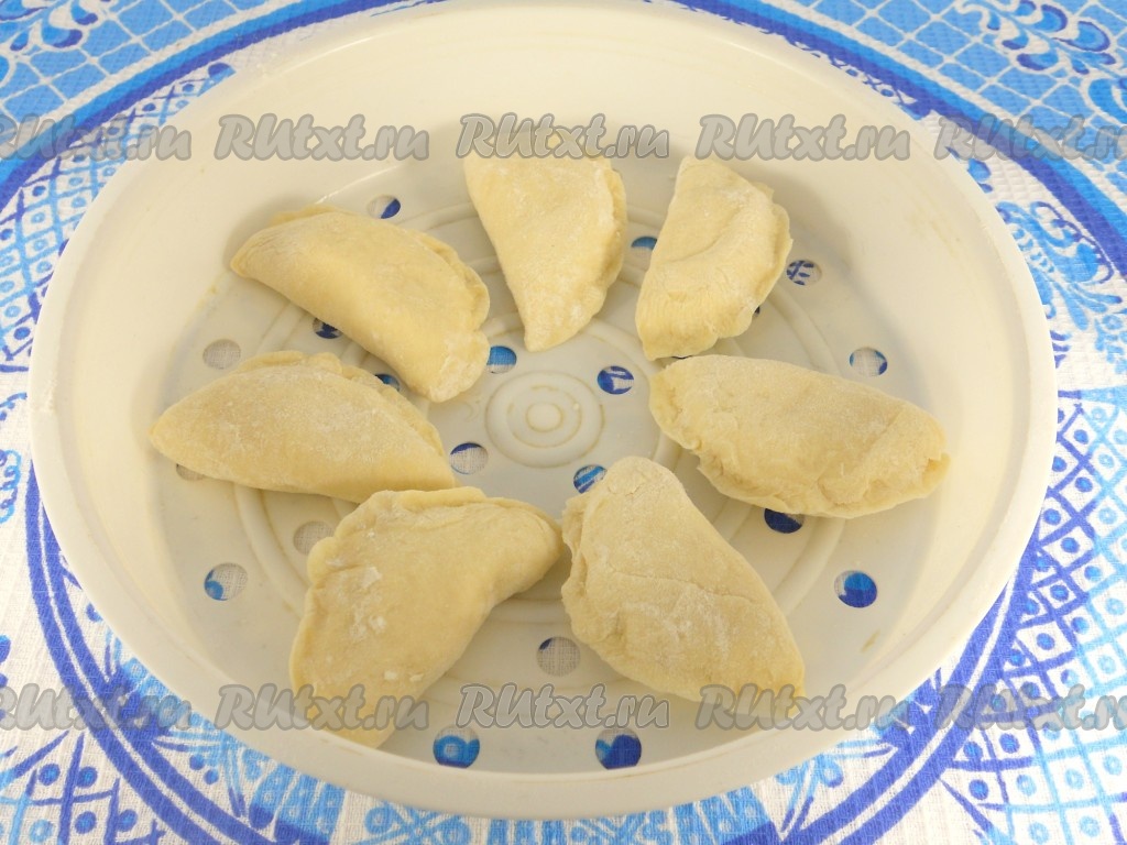 Слепить вареники обычным способом. Выложить их в форму для варки на пару.