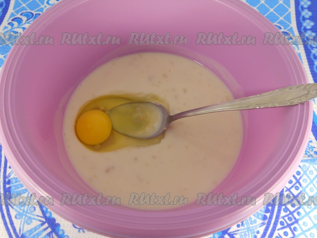 Теплый кефир влить в глубокую миску. Добавить дрожжи, сахар, соль, перемешать. Добавить яйцо и хорошенько еще раз перемешать.