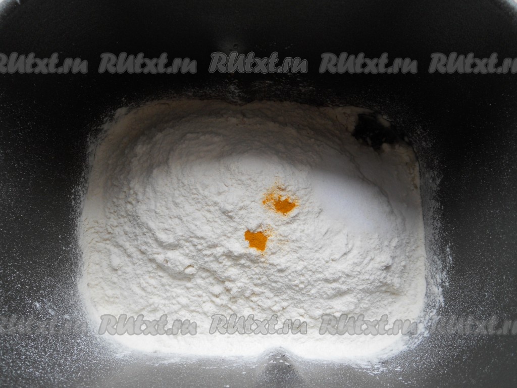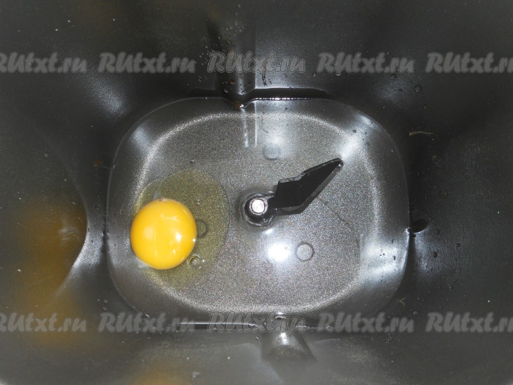 Тесто я готовила в хлебопечке. В ведерко влить воду комнатной температуры, добавить яйцо.
