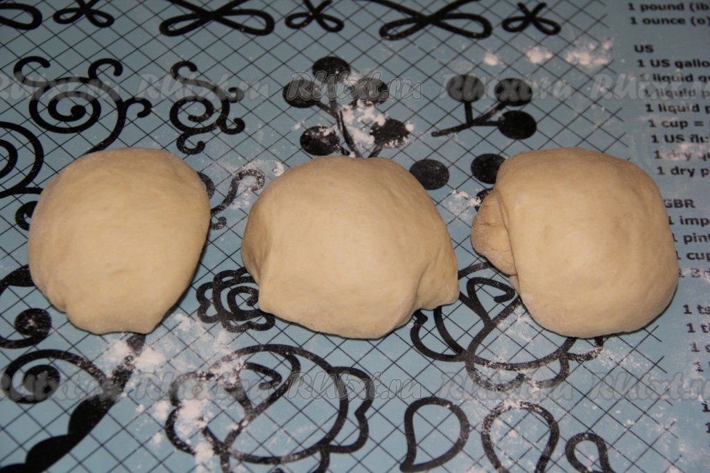 Разделить тесто на 3 равные части.