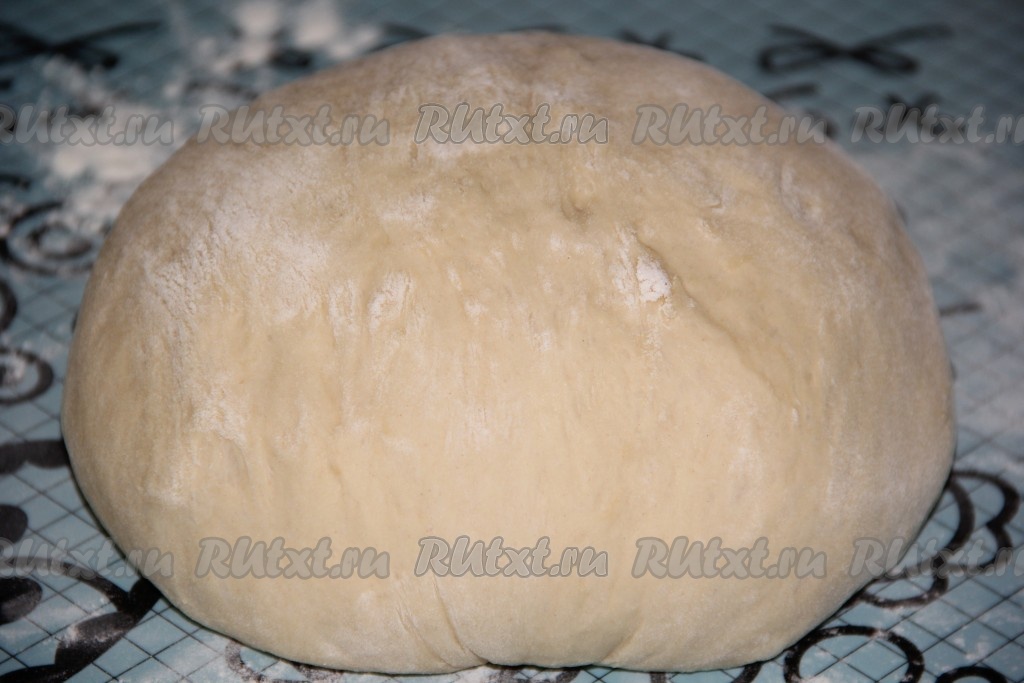 Замесить дрожжевое тесто: в 50 мл тёплой воды развести дрожжи, добавить сахар и перемешать. Поставить дрожжи в тёплое место на 15 минут, для того чтобы они ожили. На поверхности воды образуется пышная, пузырчатая шапка. В глубокую миску для замеса влить кефир комнатной температуры, добавить яйцо, подошедшие дрожжи, соль и масло. Слегка перемешать жидкую смесь. Затем, добавляя небольшими порциями просеянную муку, замесить мягкое, нежное тесто. Оставить тесто в миске, накрыть полотенцем и поставить в тепло на 1,5 часа. Тесто хорошо поднимется. Подошедшее тесто выложить на стол, припорошенный мукой. Хорошо обмять тесто.
