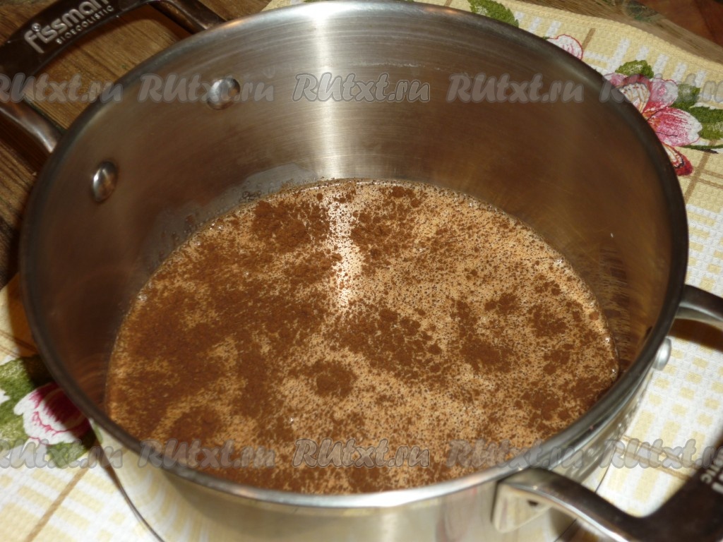Я замешивала тесто со свежемолотым кофе, можно использовать и быстрорастворимый. Свежемолотый кофе нужно выложить в ёмкость (например, в кастрюлю или турку), в которой уже находится 100 миллилитров молока, перемешать, поставить на плиту, после закипания варить 1-2 минуты. Затем процедить кофе. Если вы готовите со свежерастворимым кофе, тогда его нужно всыпать в ёмкость с горячими 100 миллилитрами молока, тщательно перемешать кофе. Горячему кофе дать немного остыть, в затем влить в него оставшиеся 250 миллилитров молока, перемешать кофейно-молочную смесь.