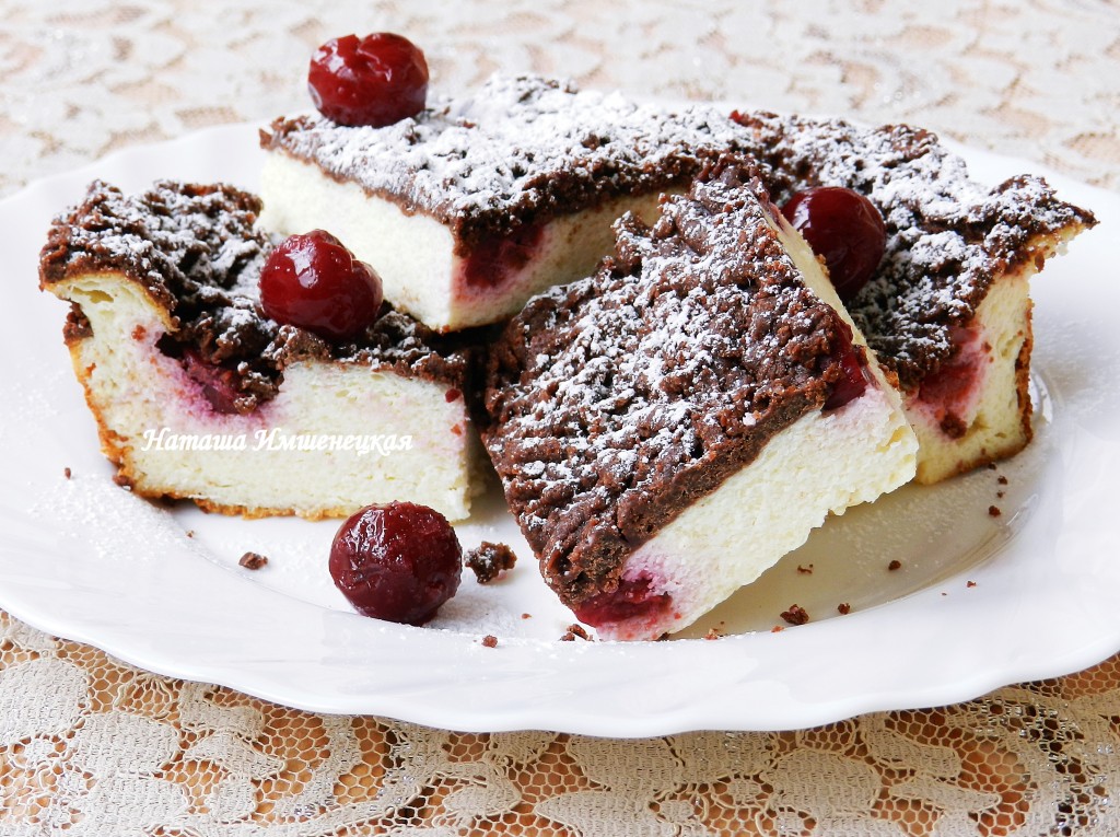 Предлагаю приготовить в духовке вкусную, ароматную творожно-шоколадную запеканку. В этой запеканке нежнейший творожный слой покрыт аппетитной шоколадной корочкой. Для того чтобы блюдо стало ещё более полезным, я решила добавить в творожный слой немного ягод вишни. Можно использовать и другие ягоды или вовсе их не добавлять. Отличная запеканка для всей семьи, попробуйте!