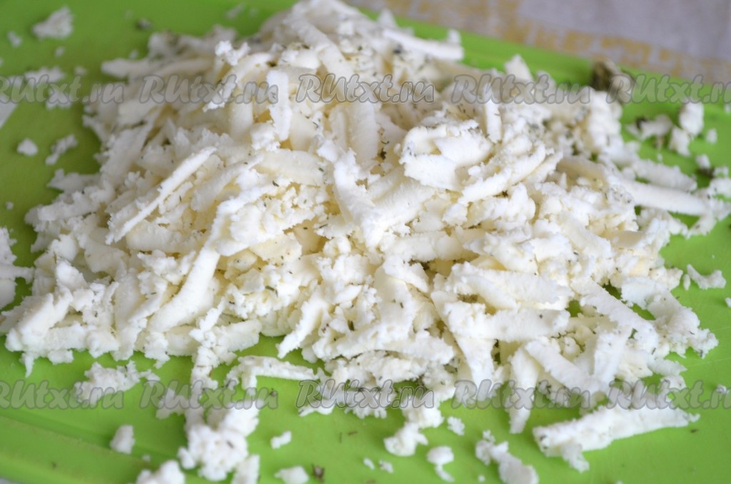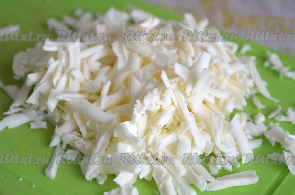 Плавленный сырок натереть на крупной тёрке. Я рекомендую предварительно сырок немного подморозить в морозилке, чтобы легче было его натирать.