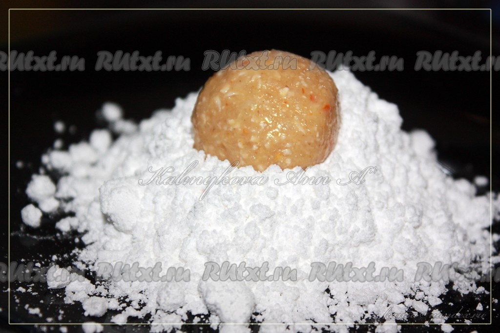 Скатать шарики и обвалять их в оставшейся сахарной пудре.