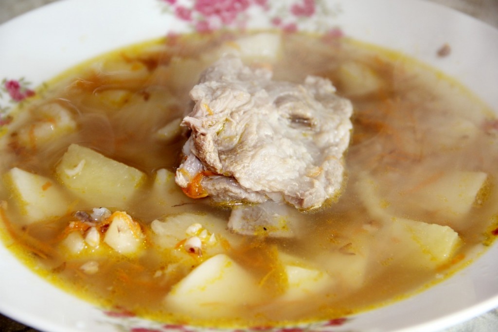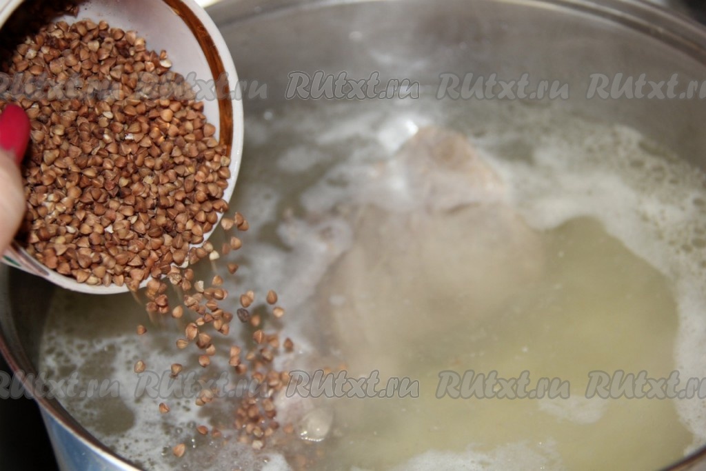 Промываем гречку и отправляем в суп со свининой и картошкой.