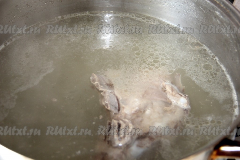 Заливаем свинину водой, доводим до кипения, снимаем пену, уменьшаем огонь и варим мясо до готовности (примерно 1,5-2 часа).