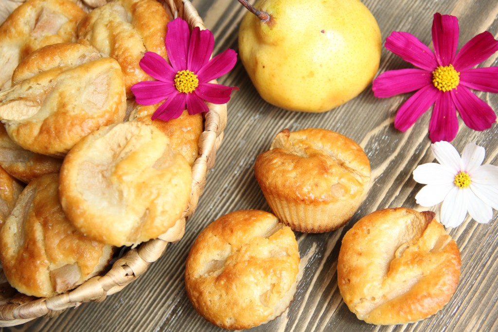 Хочу поделиться замечательным рецептом приготовления маффинов с грушей. Выпечка получается очень вкусной, нежной и сочной. В этом рецепте используются крупно нарезанные груши. Но при желании такие маффины можно приготовить с яблоками, сливами или нектаринами. Порадуйте своих родных и близких такой прекрасной выпечкой.