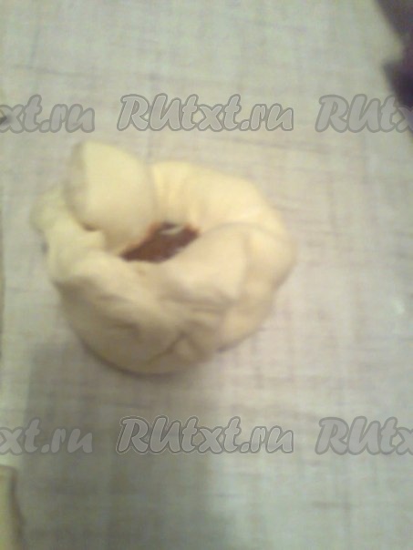 Собрать тесто со всех сторон вместе в виде мешочков, оставив в серединке отверстие