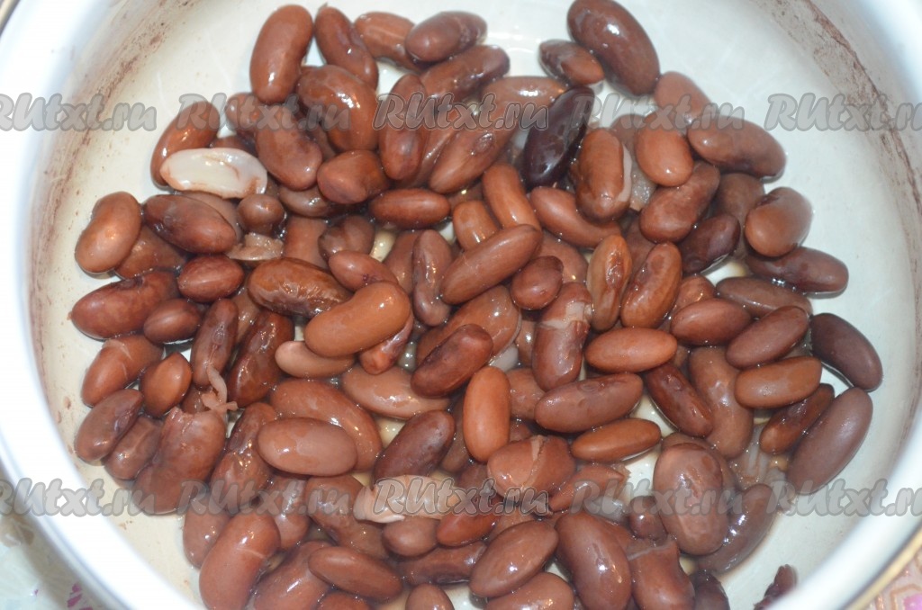 На ночь замочить фасоль в холодной воде. Затем отварить фасоль в течение 40 минут в несоленой воде.