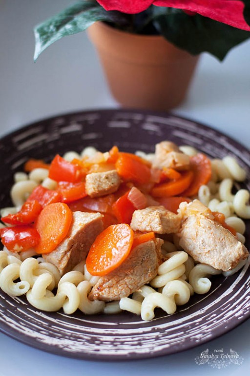 В очередной раз задумались, что приготовить к ужину? Приготовьте гуляш с овощами! Быстро, сытно и готовится из доступных продуктов, которые чаще других бывают в холодильнике.