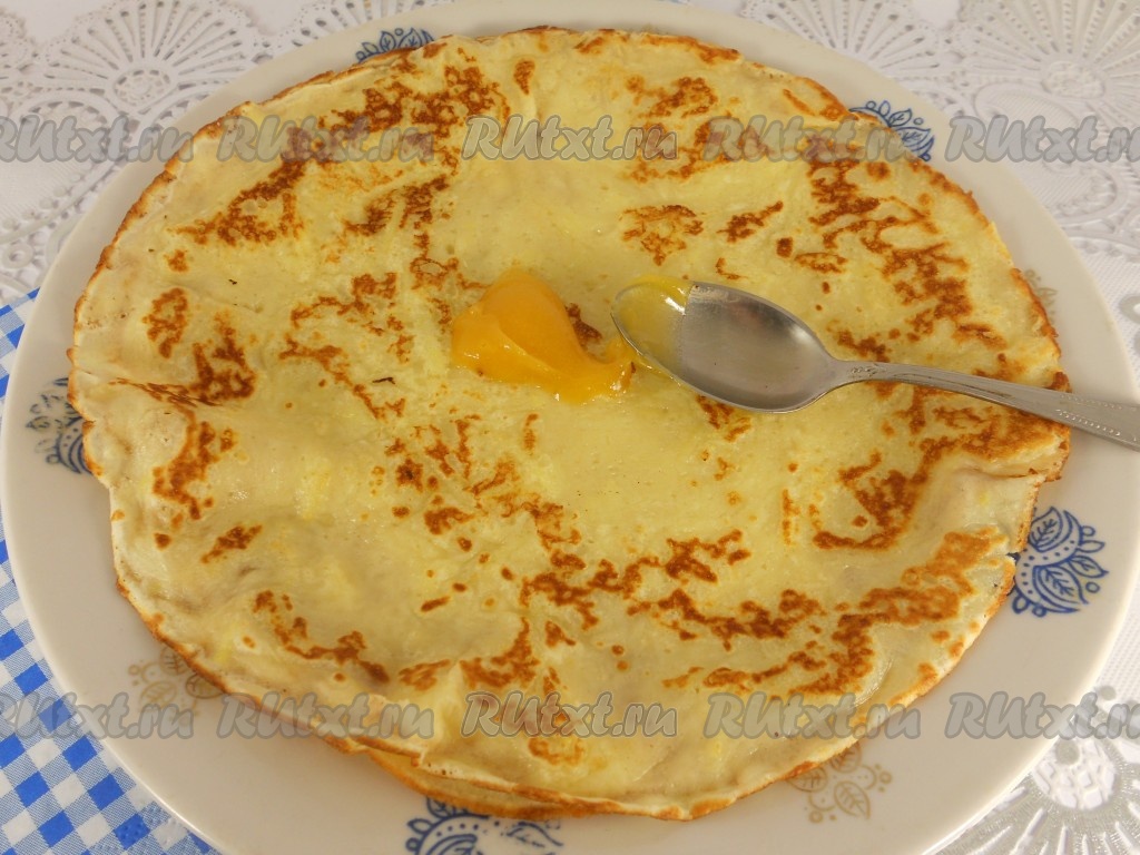 Готовые блины можно смазать мёдом и свернуть.