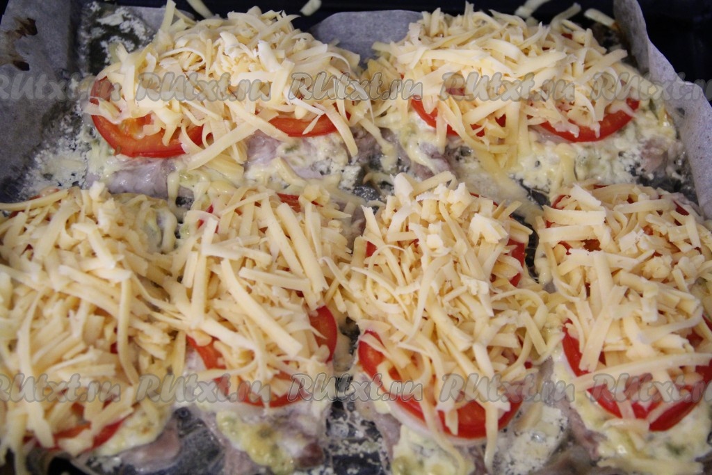 Сыр должен расплавиться и слегка зарумяниться. Вкусную, аппетитную свинину, запеченную с помидорами и сыром, подать в горячем виде с гарниром.