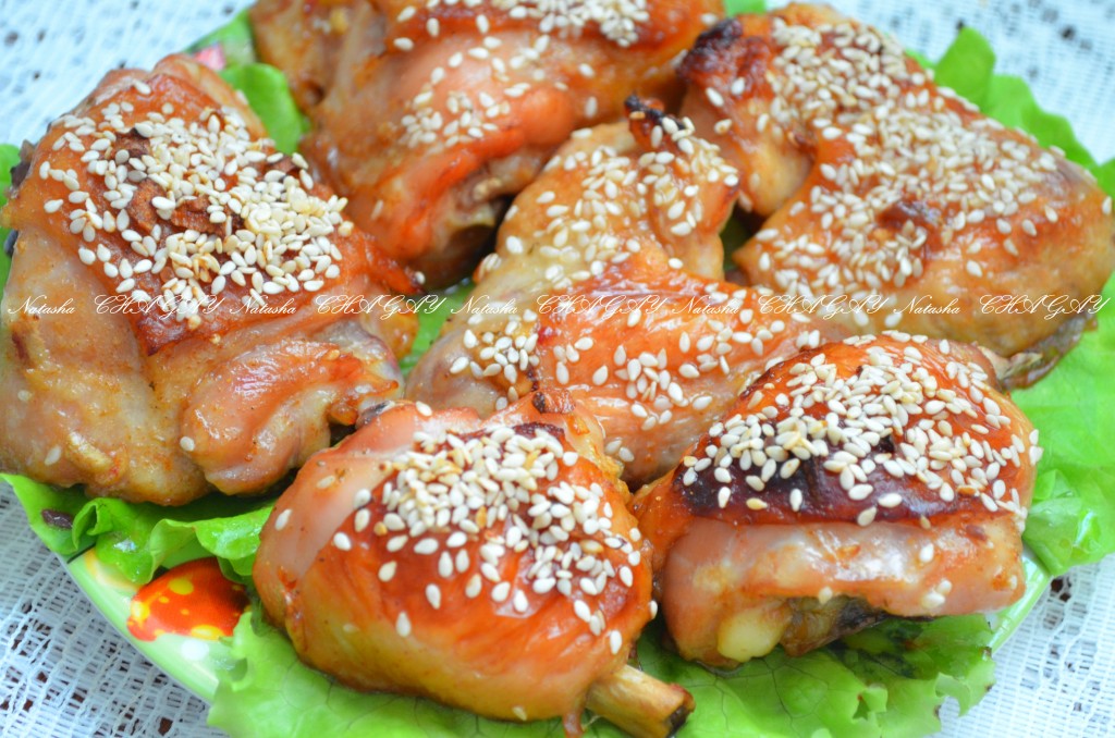 Курица по-восточному, приготовленная по этому рецепту, имеет сладковатый привкус, поэтому если вы любитель остренького, а не сладенького, вам может прийтись не по вкусу это блюдо. Но все же я бы рекомендовала попробовать. Побалуйте себя и свою семью вкусной и ароматной курочкой, запеченной в духовке с кунжутом.
