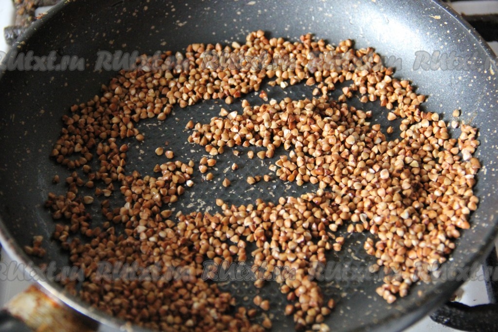 Гречку перебираем, промываем водой, затем выкладываем на сухую сковороду и обжариваем, помешивая, 2-3 минуты на среднем огне. В закипевший куриный бульон выкладываем обжаренную гречку и очищенную морковку, натёртую на крупной тёрке, доводим до кипения и варим на небольшом огне 20 минут.
