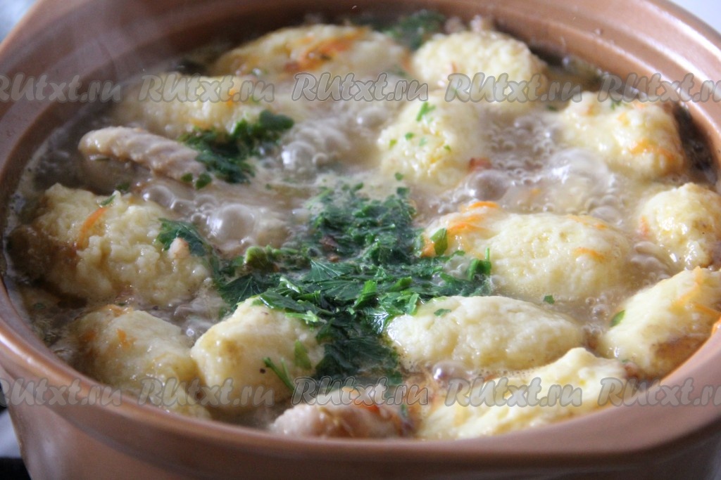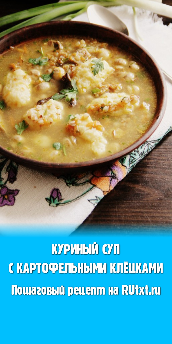 Предлагаю сварить вкусный куриный суп с нежными картофельными клёцками. Готовится он несложно. Для того чтобы сделать вкус блюда ещё более насыщенным, я добавила в него гречку. Приготовьте этот сытный, аппетитный суп и он прекрасно впишется в повседневного меню.