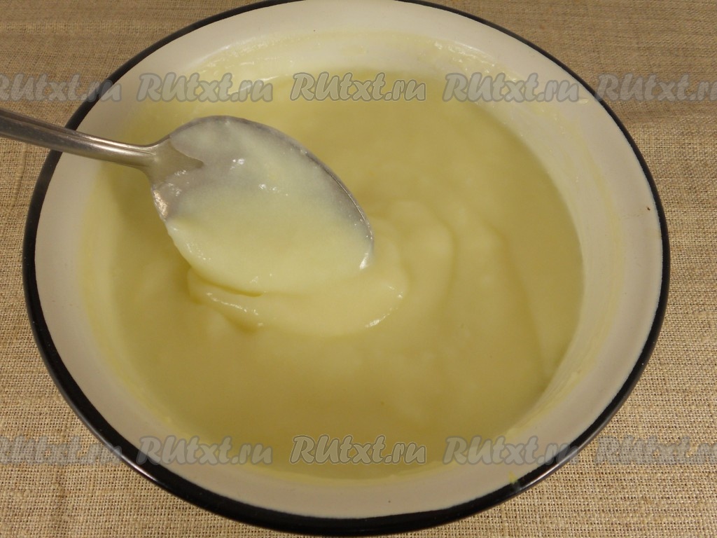 Поставить посуду со смесью на средний огонь и при постоянном помешивании довести до кипения, затем, уменьшив огонь, не переставая помешивать, проварить крем до загустения (у меня обычно крем загустевает через 3-5 минут после закипания). Снять заварной крем с огня и дать остыть.