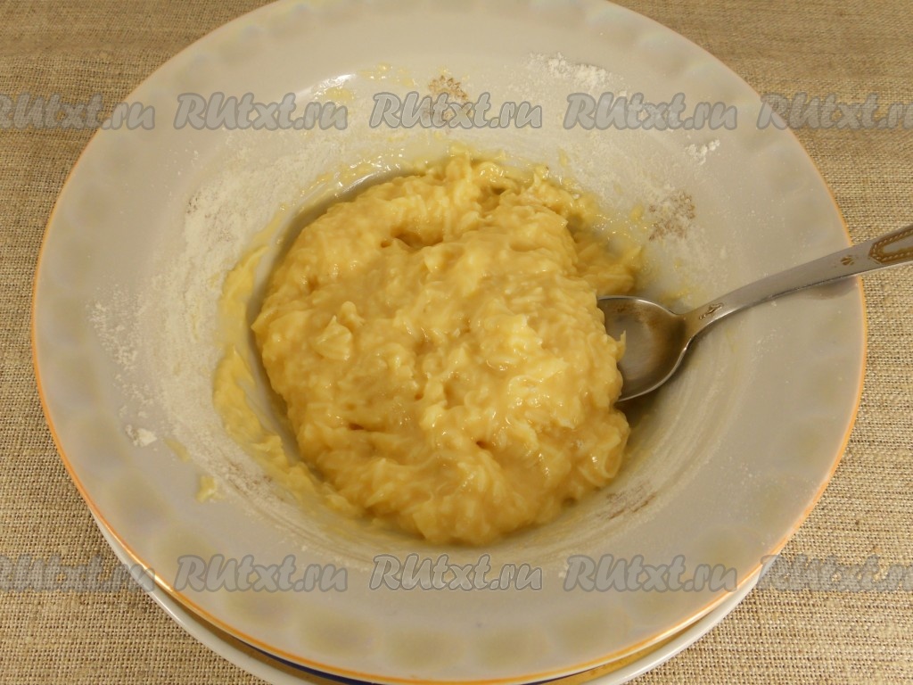 Как только сырное тесто станет по консистенции чуть гуще, чем на оладьи, значит больше муку добавлять не нужно.