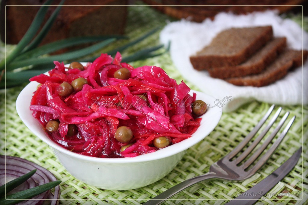 Салат заправить по вкусу, я готовлю с горошком, красным луком и не рафинированным маслом.