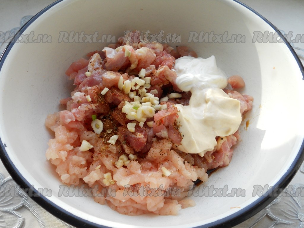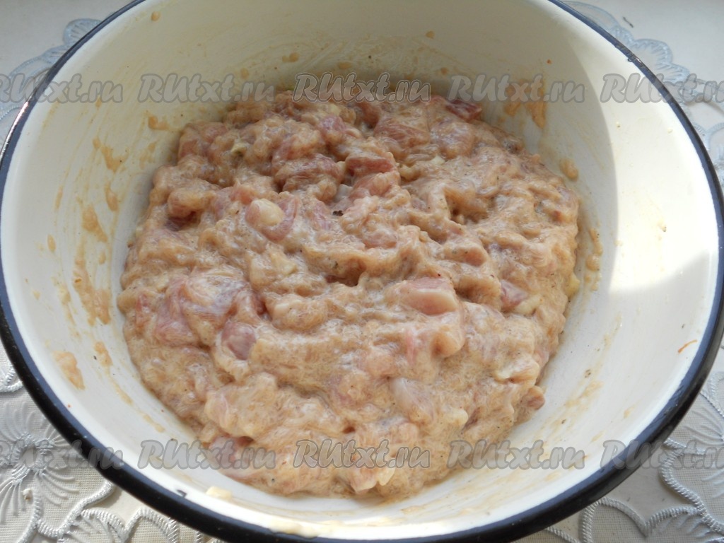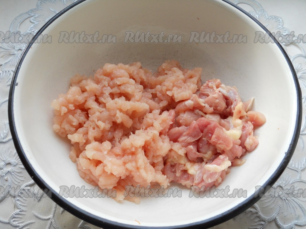 Куриное филе перекрутить на мясорубке. Окорочка или бедрышки освободить от костей, мясо порезать мелкими кусочками.