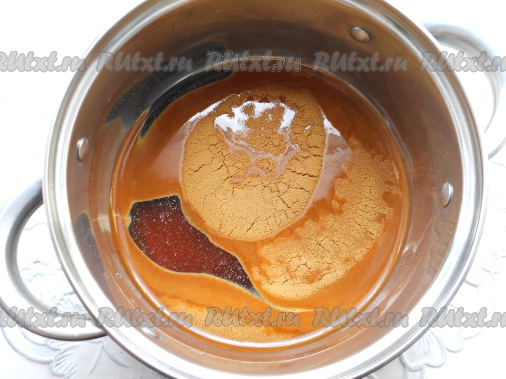 Когда кофейный сироп будет готов, он начинает сильно пениться в кастрюле.