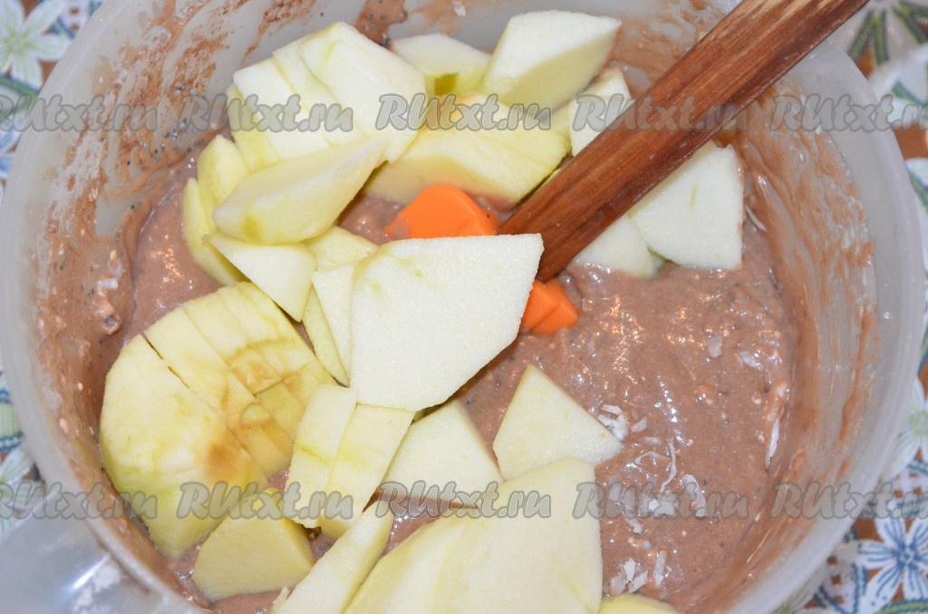Добавить очищенные и нарезанные на кусочки яблоки, аккуратно перемешать.