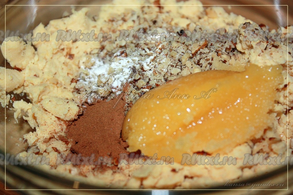 До однородной консистенции смешать грецкие орехи, нут, ванилин, корицу и мед.