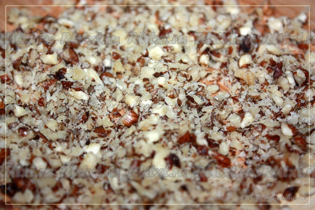 Порубить мелко грецкие орехи.