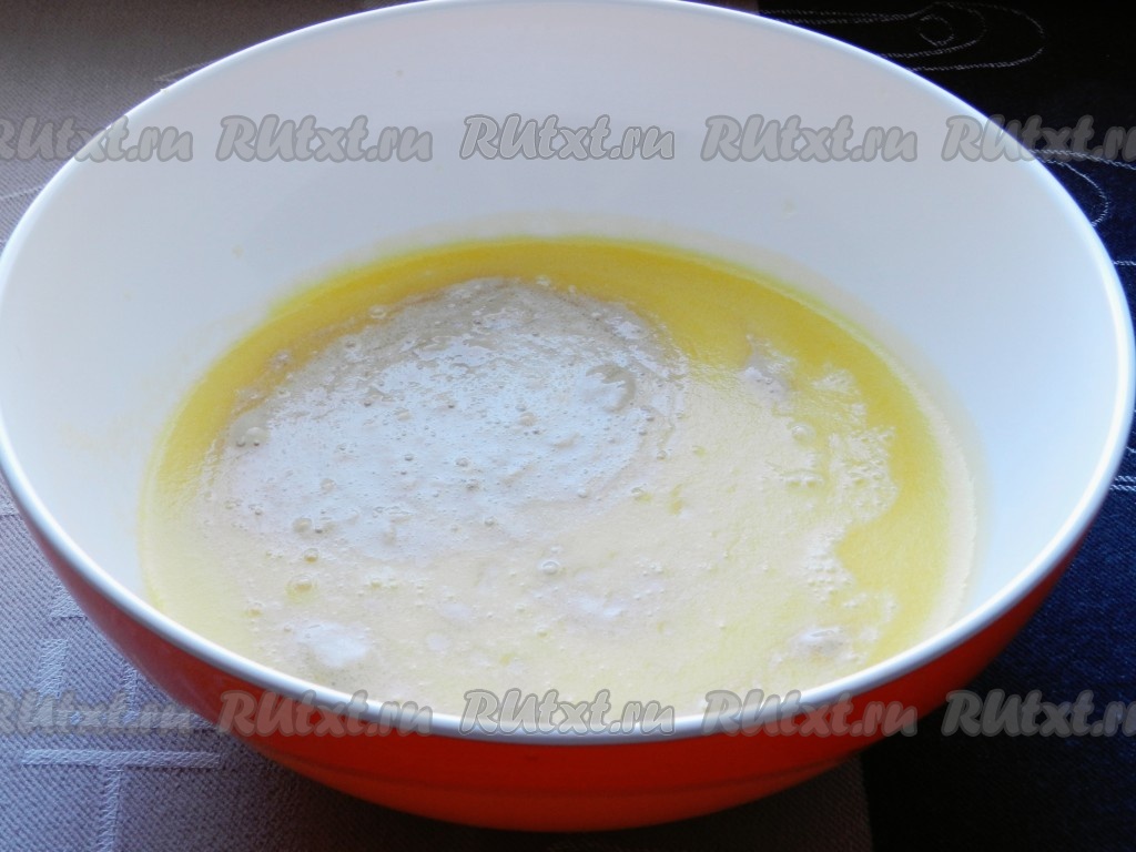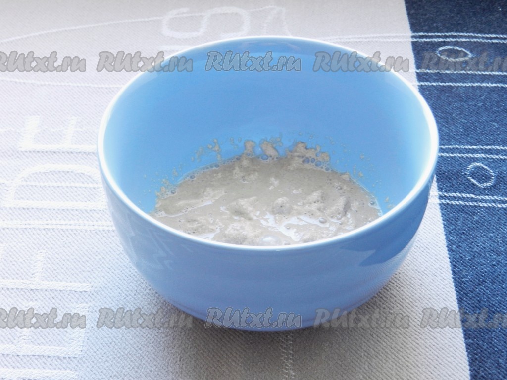 Дрожжи залить 2 столовыми ложками теплой воды, перемешать и оставить на 10 минут.
