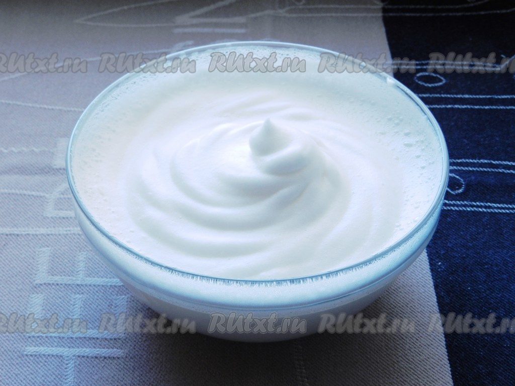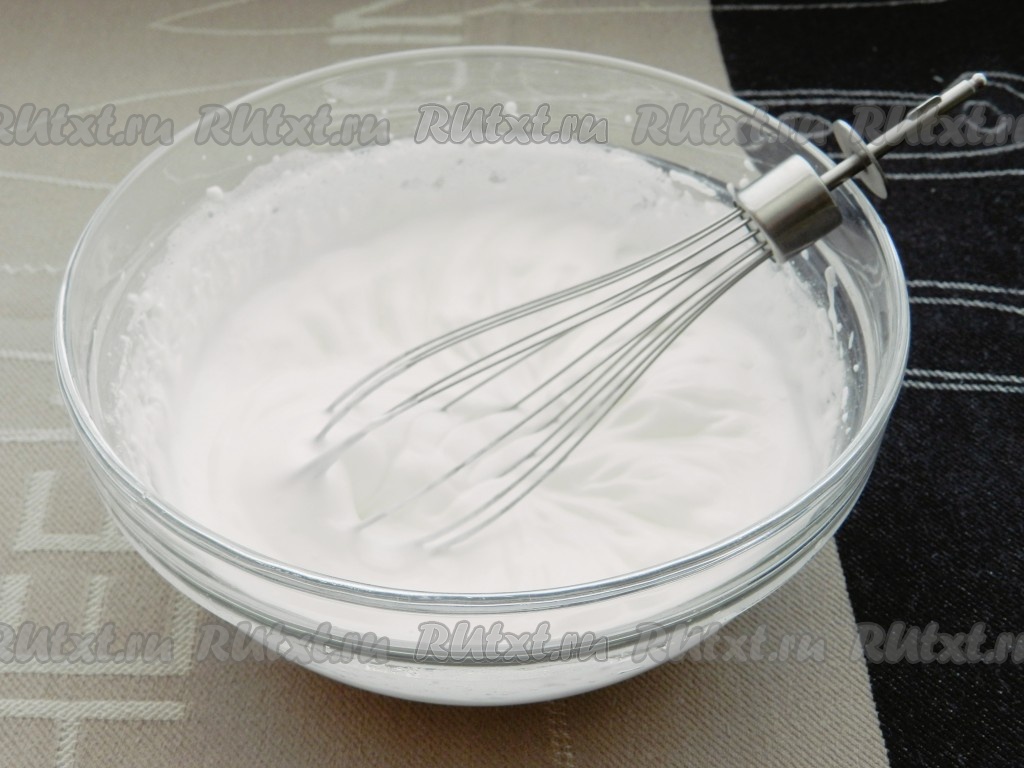 4 белка взбить в плотную массу.