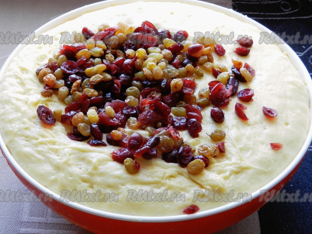 Добавить в тесто промытые и просушенные ягоды, снова все хорошо вымесить.