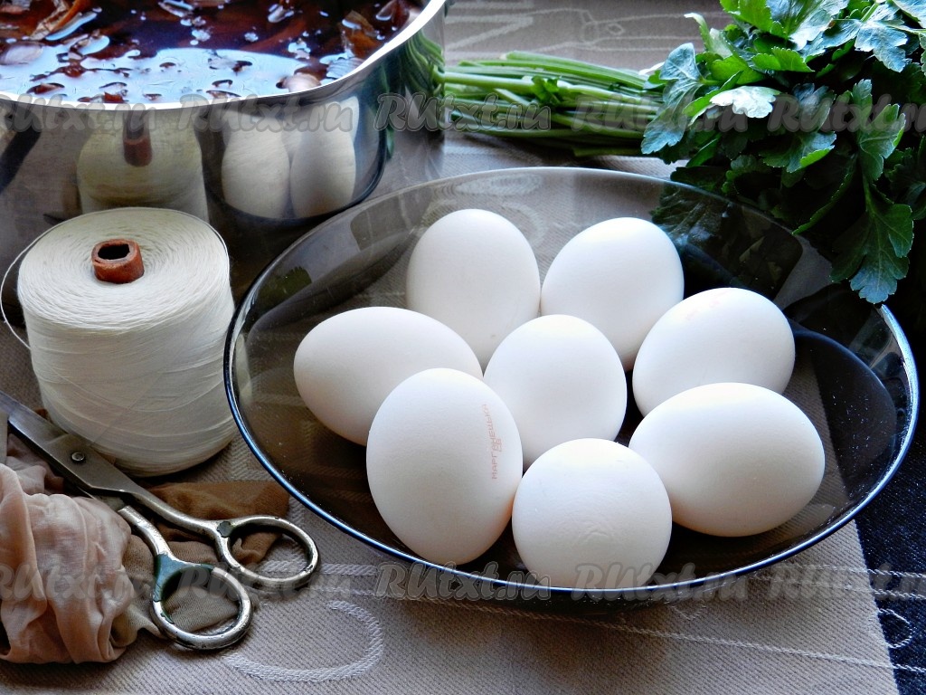 Для приготовления яиц, крашенных в луковой шелухе, понадобится: