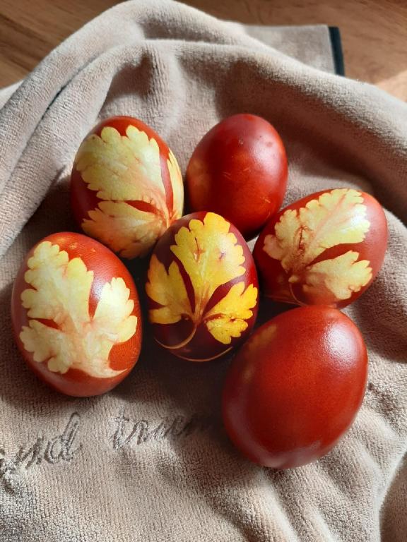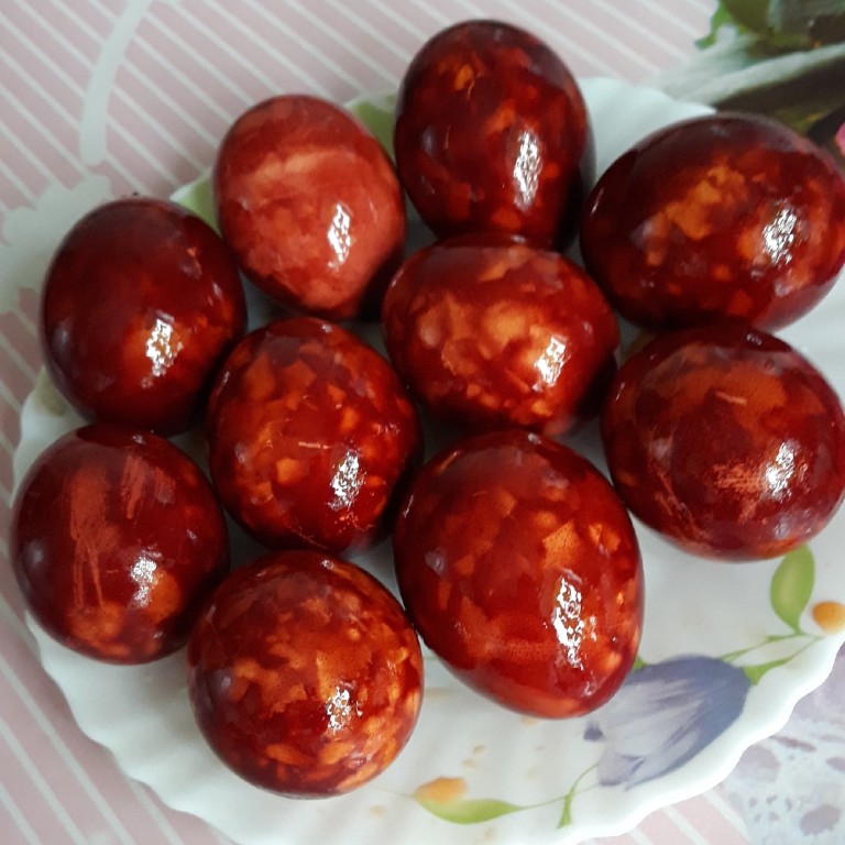 Яйца, крашенные в луковой шелухе