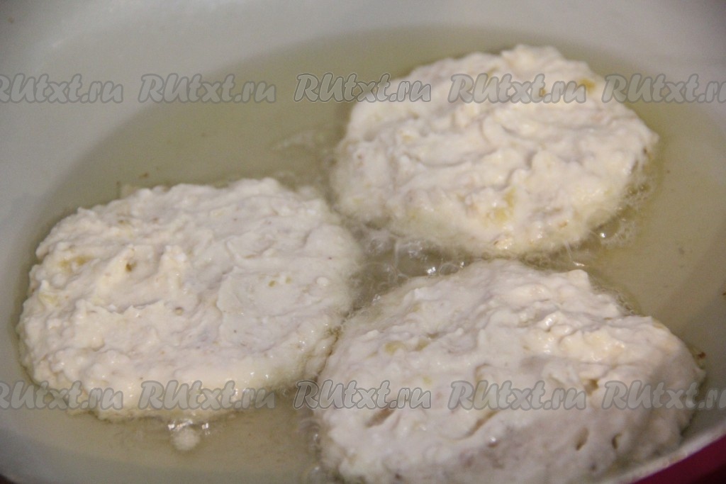 Обжарить сырники с двух сторон до золотистой корочки (примерно по 2-3 минуты с каждой стороны) на среднем огне.