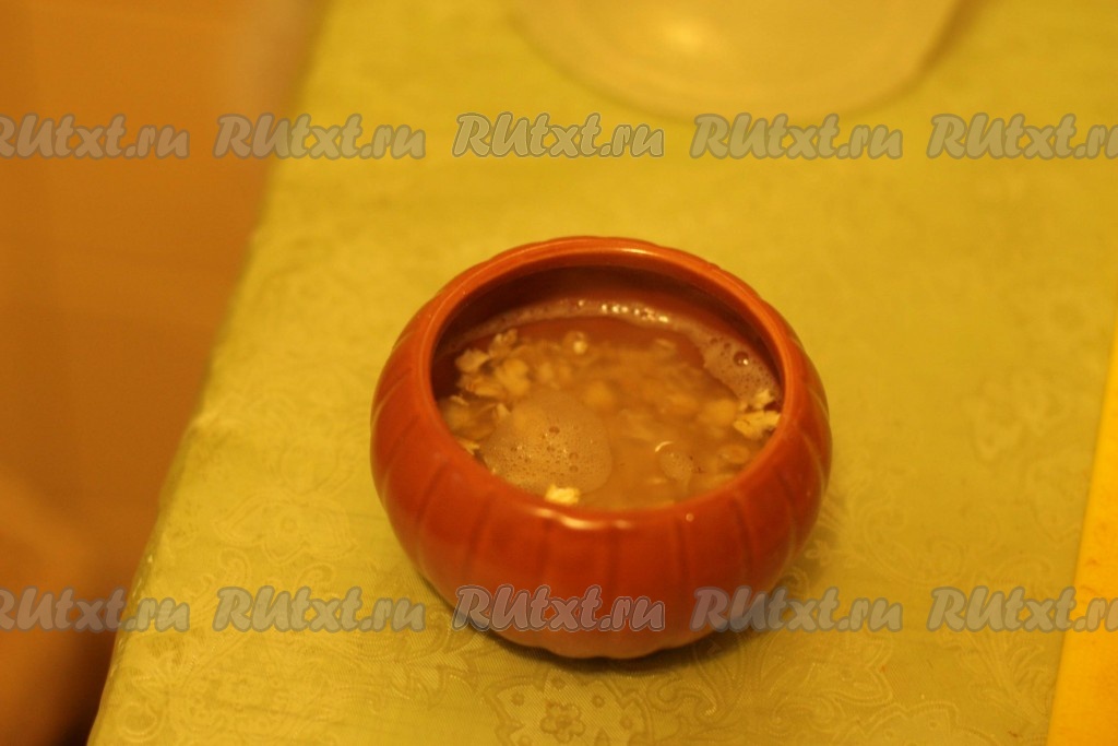 Это добавляет приятный аромат готовой овсяной каше. Выкладываем хлопья в горшочек/кастрюльку, заливаем кипятком или горячим молоком, так чтобы жидкость полностью покрыла хлопья, добавляем масло и накрываем крышкой.