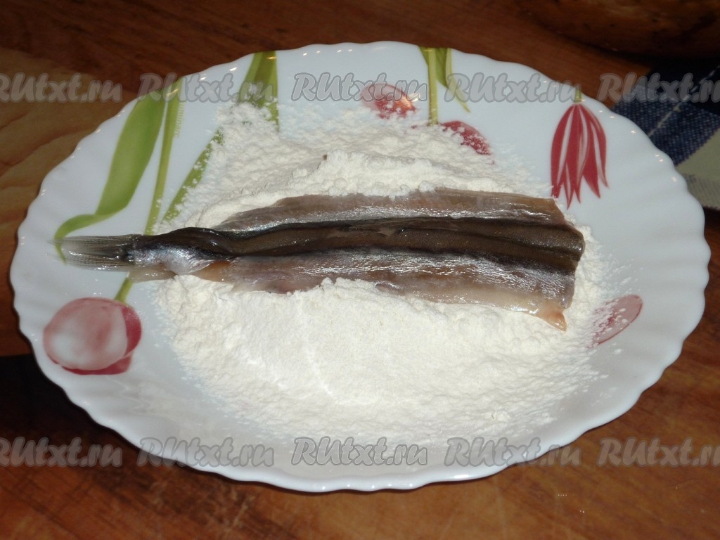 Яйца с щепоткой соли взбить вилкой. В отдельную тарелку насыпать муку. Обвалять мойву в муке со всех сторон.