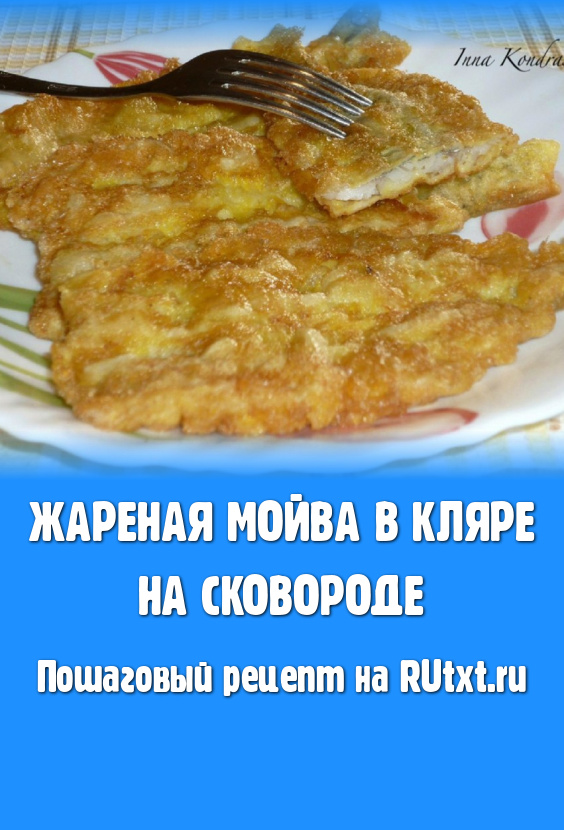 На сковороду, разогретую с растительным маслом, выложить филе мойвы в кляре и обжарить на среднем огне с двух сторон до золотистого цвета.