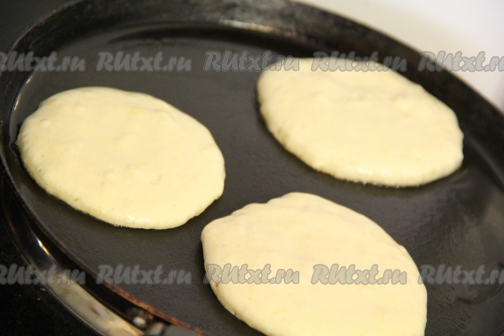 Выпекать оладушки с двух сторон до золотистого цвета.