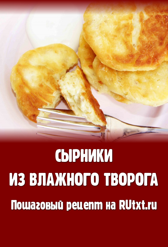 Сырники, приготовленные из влажного творога, получаются с аппетитной румяной корочкой снаружи и очень нежными внутри. Подавать к столу их нужно горячими, дополнив сметаной или мёдом.