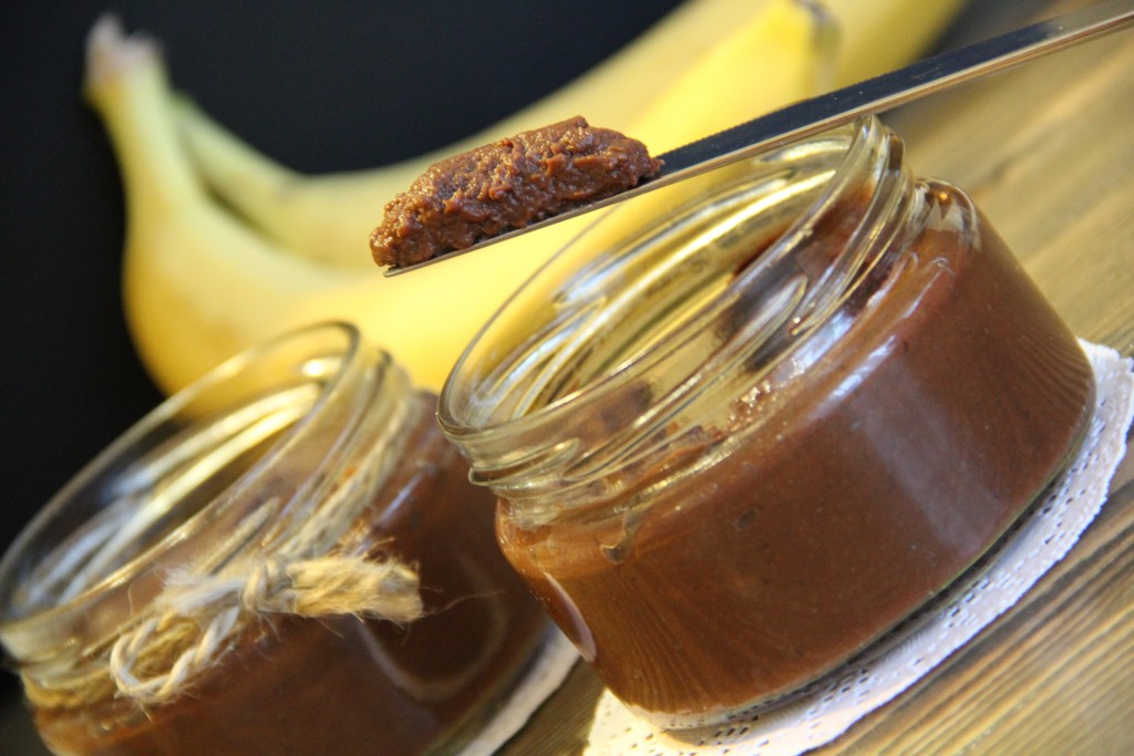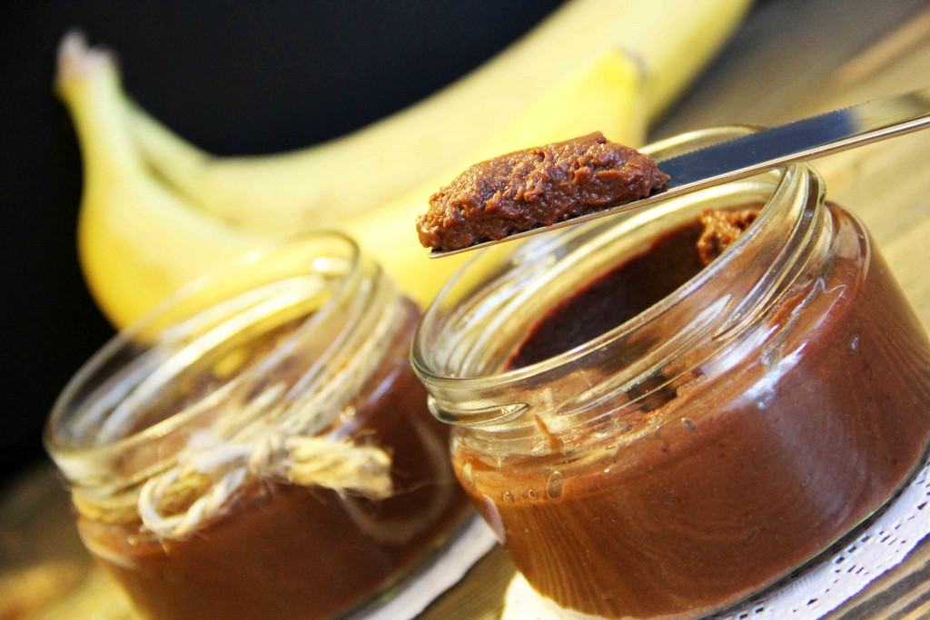 Готовую очень вкусную шоколадно-банановую пасту подать на кусочке белого хлеба. Ещё такую домашнюю пасту можно использовать в роли начинки для маффинов, крема для тортов или рулетов.