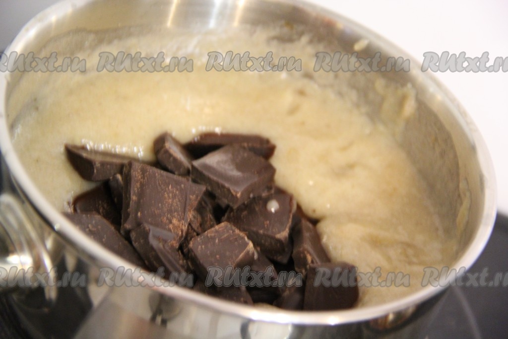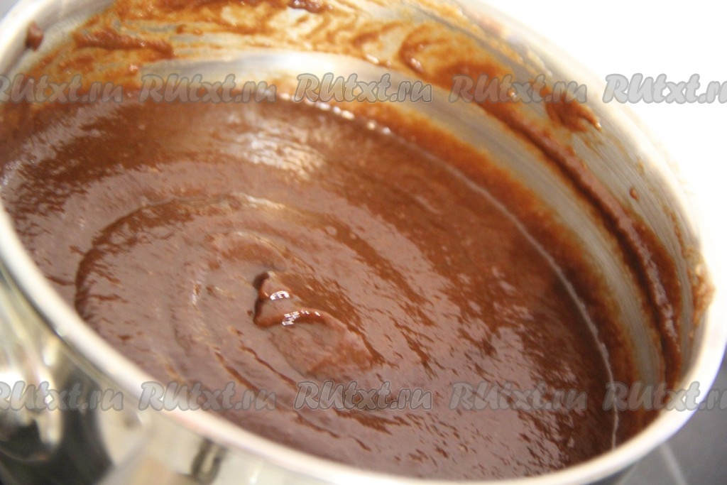 Как только шоколад растворится и масса станет однородной, снять кастрюлю с огня.