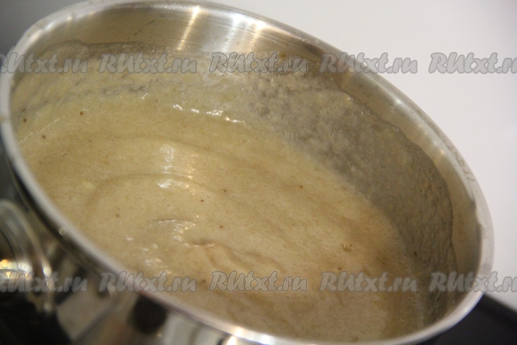 Поставить кастрюлю с банановой массой на огонь. Довести до кипения и варить при помешивании 5 минут.