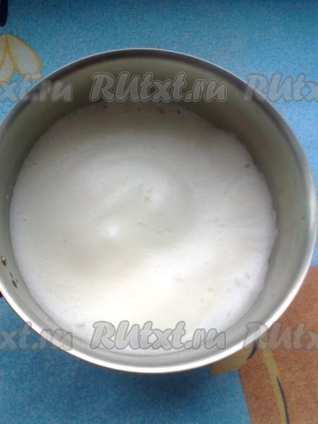 Отделяем белки от желтков, белки кладем в чистую сухую посуду для взбивания. Начинаем взбивать белки миксером до мягкой пены,