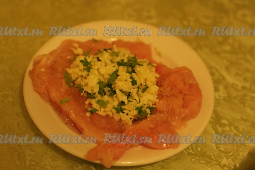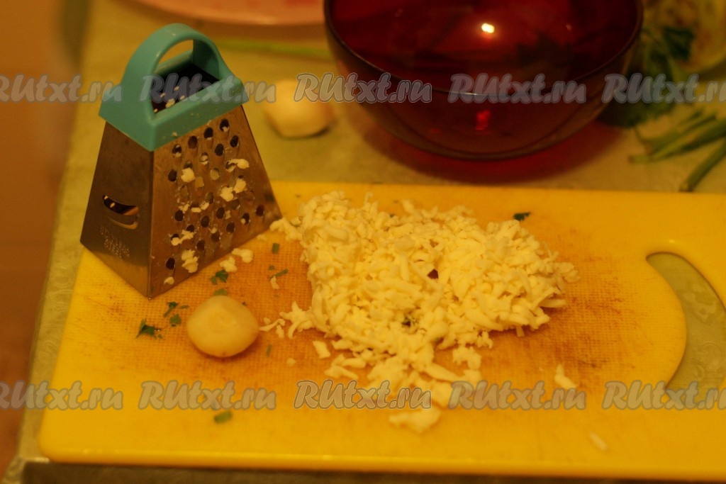 Зелень петрушки мелко порубить. Сыр и 1 зубчик чеснока натереть на терке.