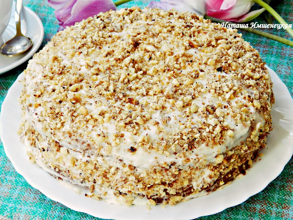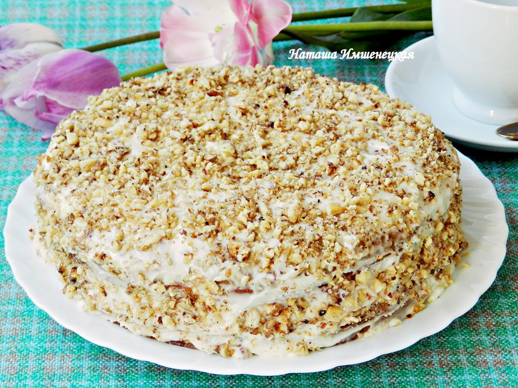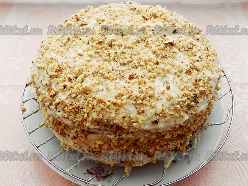 Затем присыпать измельченными орехами и оставить для пропитки на 2-3 часа в холодильнике.