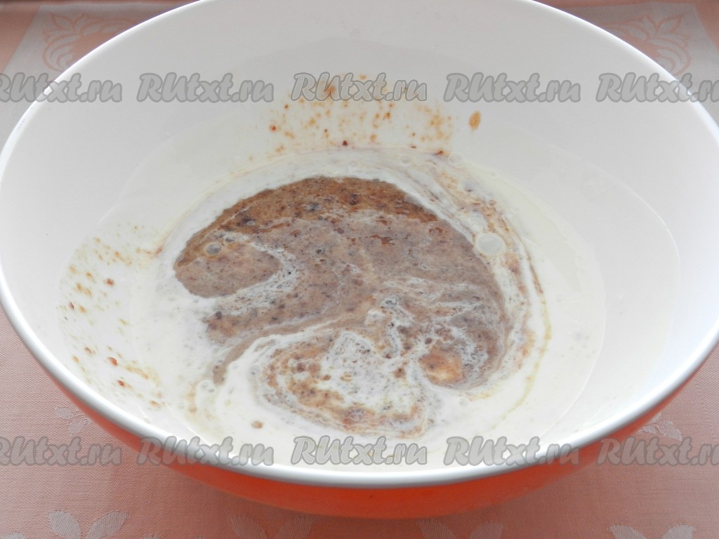 Добавить соду, перемешать и оставить на 20 минут. Смесь вспенится и увеличится в объеме.