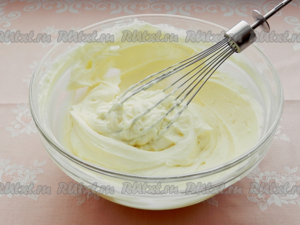 Для крема смешать творог со сметаной и сахарной пудрой.