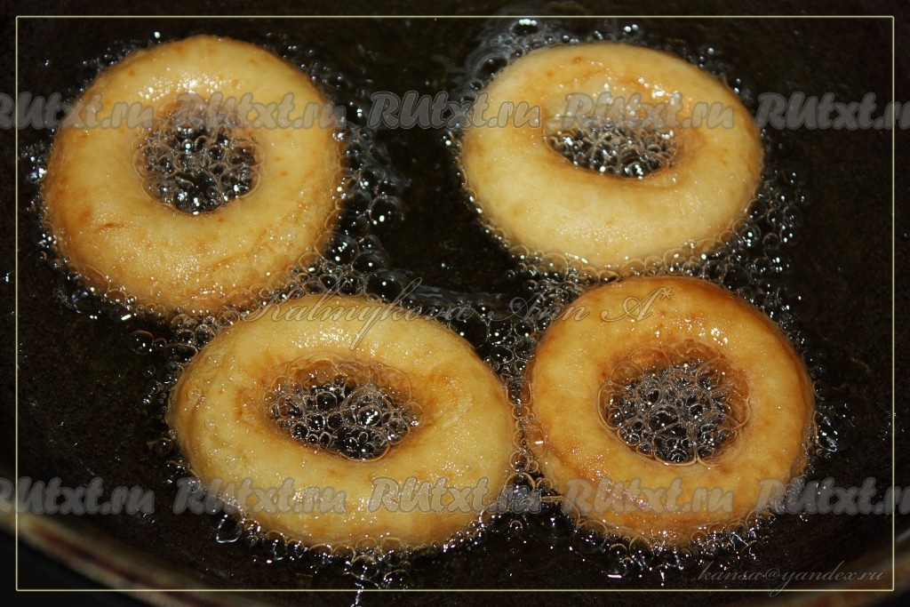 Из остатков теста снова раскатать пласт и вырезать еще пончики.