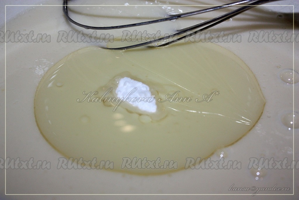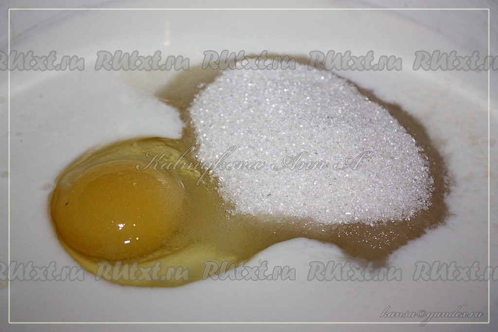 Соединить кефир с яйцом, сахаром и щепоткой соли, перемешать в однородную массу.